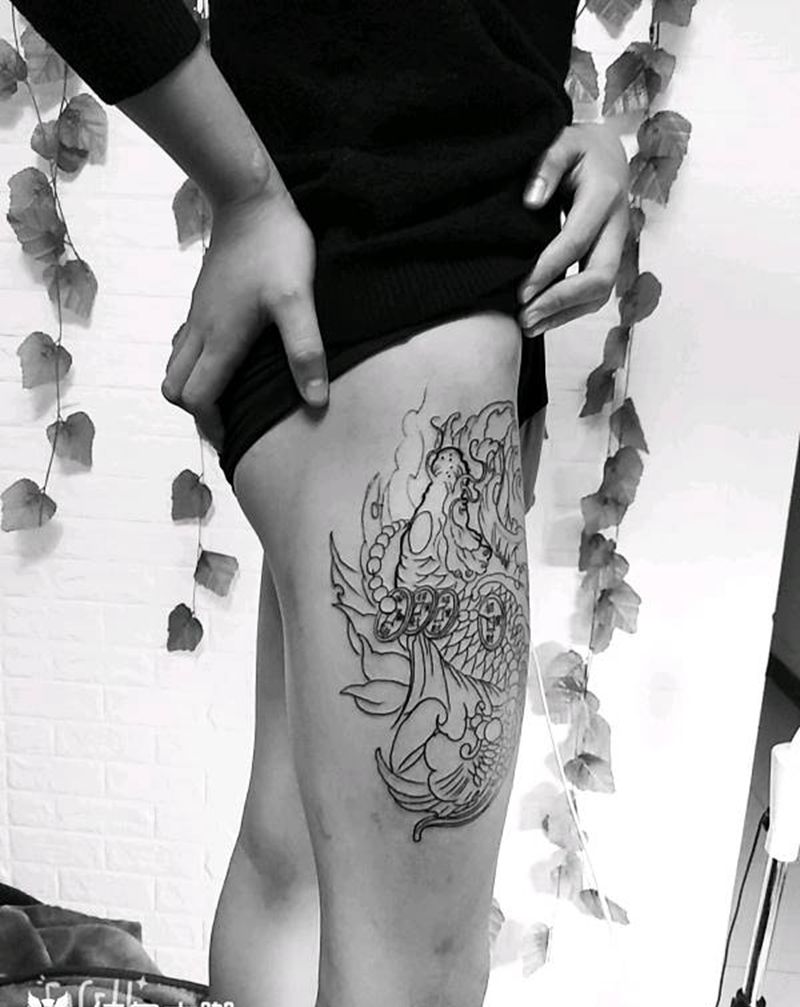 鲤鱼线条纹身图片