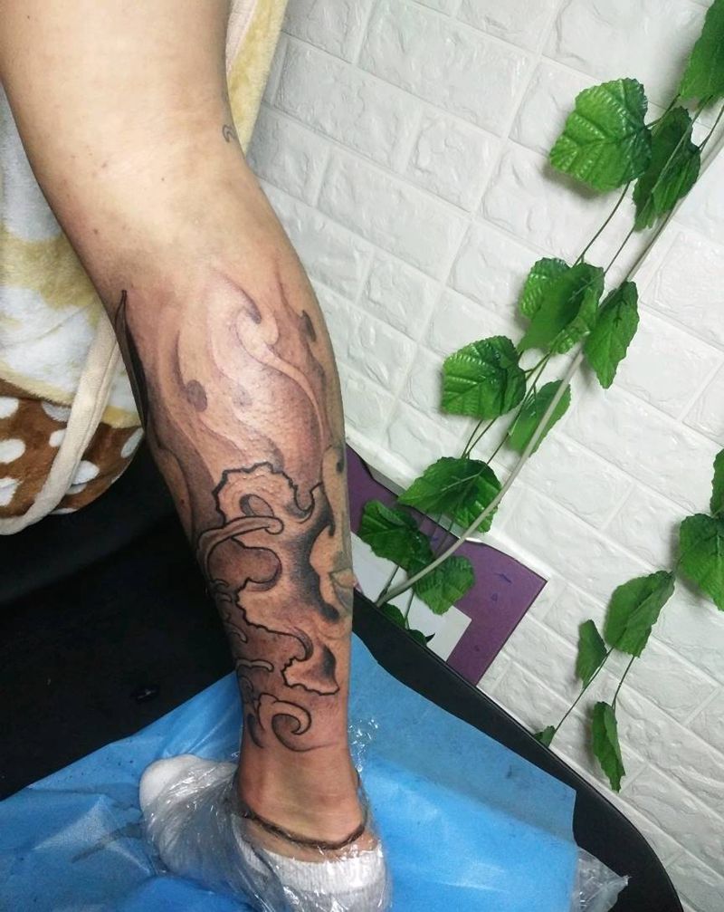 当前位置: 首页 >河南省信阳市纹身店-印记纹身店纹身图案>手绘拼接小腿纹身图片