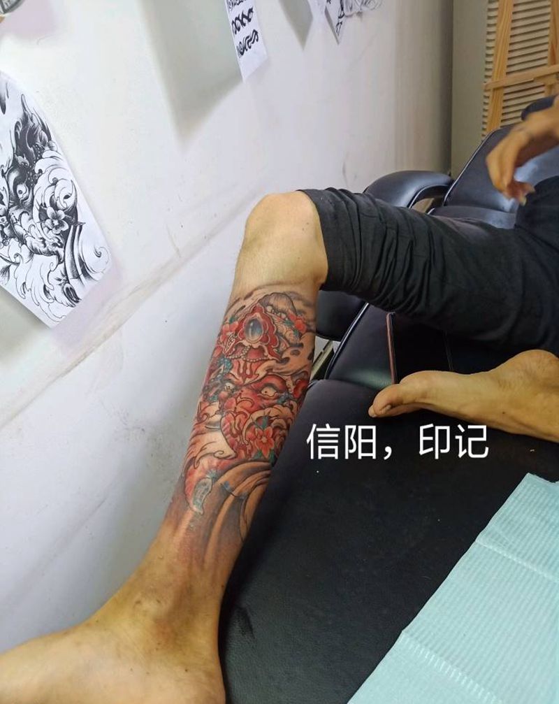 • T网红王老大花腿龙纹身图片_腿部新传统纹身图案