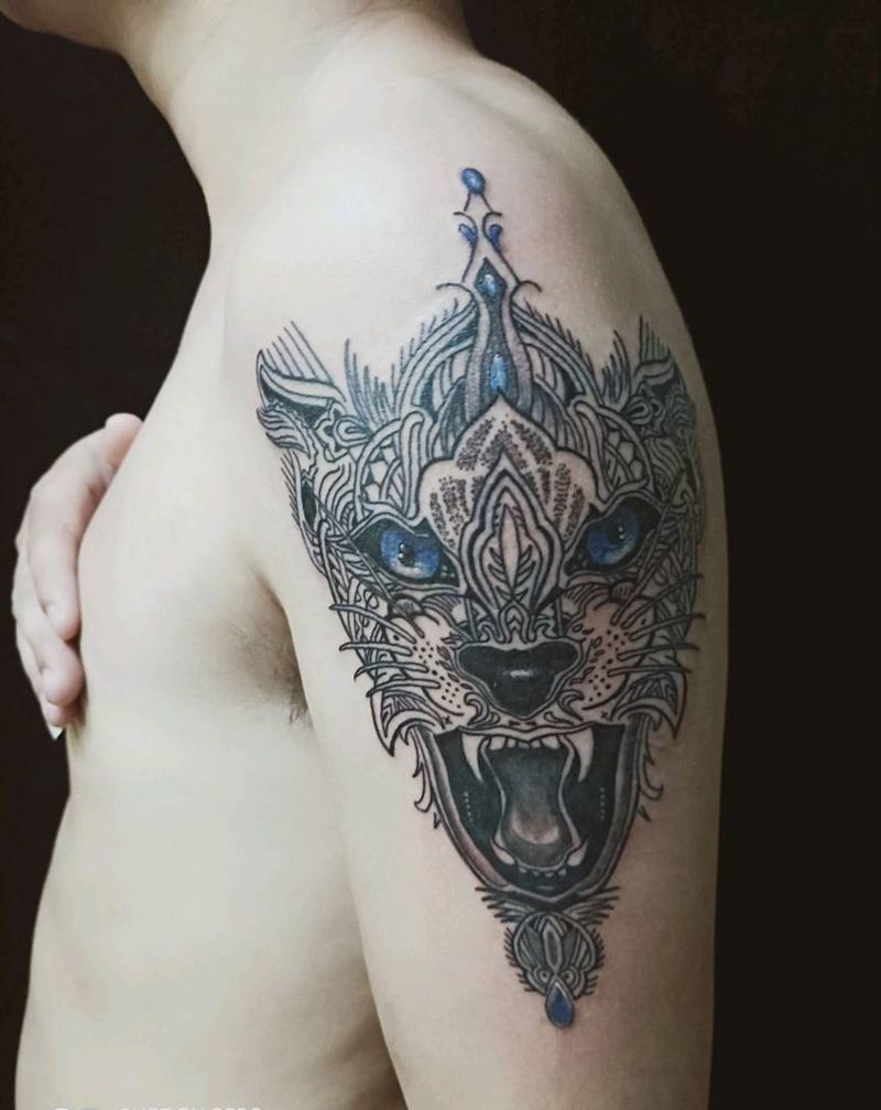 • 纹身吧推荐的披肩图腾半胛纹身图案作品展示