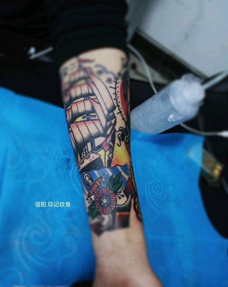 当前位置: 首页 >河南省信阳市纹身店-印记纹身店纹身图案>oldschool小臂拼接纹身图片