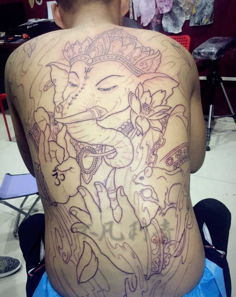 当前位置: 首页 >河南省三门峡市纹身店-客都购物广场纹身图案>满背象神,先做线条纹身图片_背部传统鬼神动物宗教纹身图案