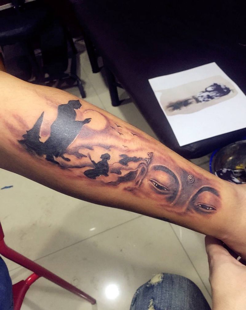 一心向佛纹身图片_成品手臂传统宗教原创佛纹身图案