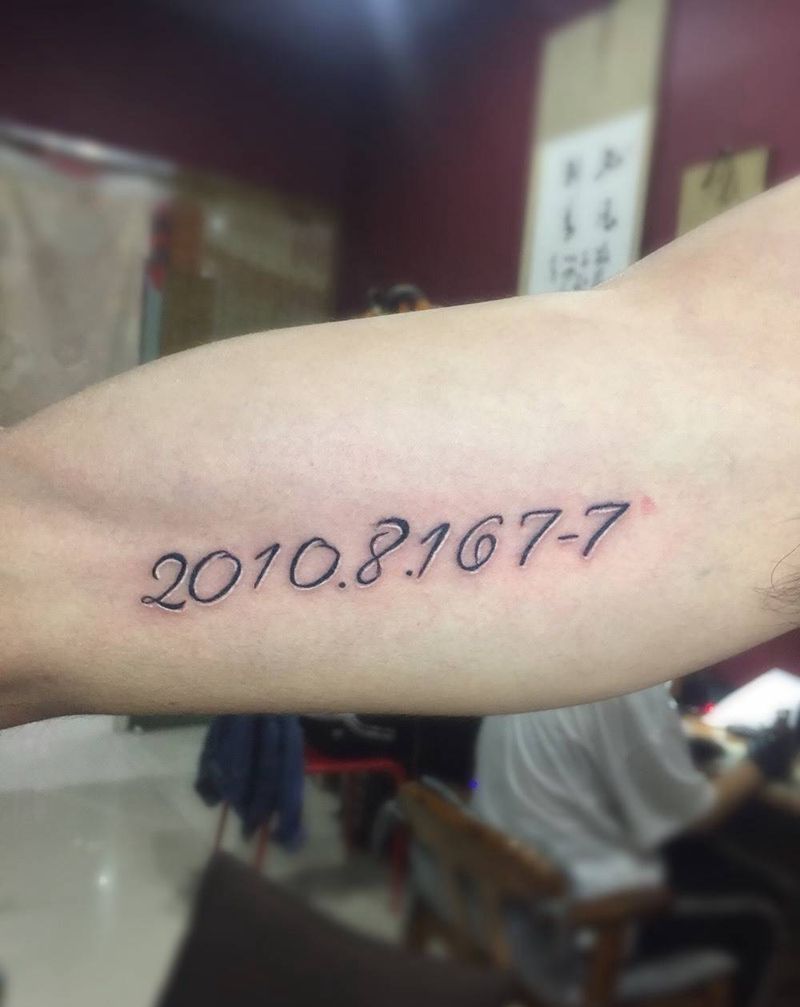 两个孩子的生日纹身图片_成品手臂清新图腾生日数字纹身图案