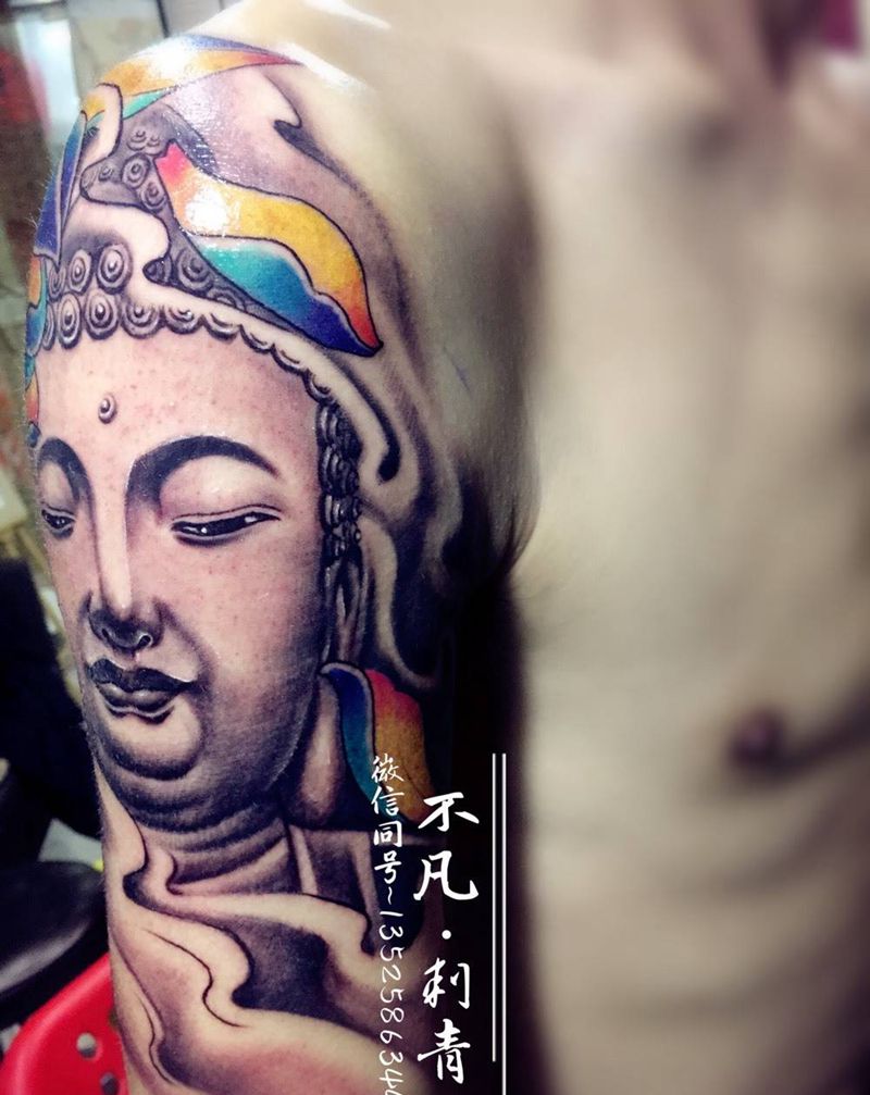 当前位置: 首页 >河南省三门峡市纹身店-客都购物广场纹身图案>佛纹身图片_成品肩部手臂传统宗教佛纹身图案