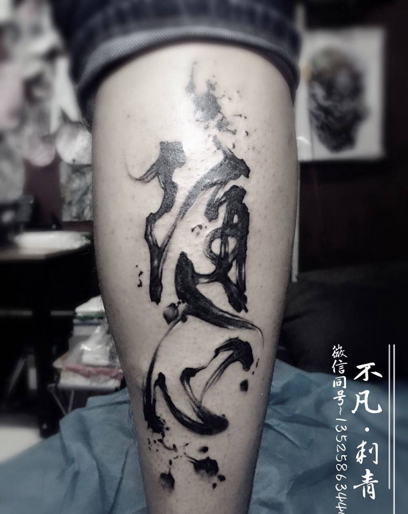 当前位置: 首页 >河南省三门峡市纹身店-客都购物广场纹身图案>随心纹身图片_成品腿部传统国画字符水墨字纹身图案