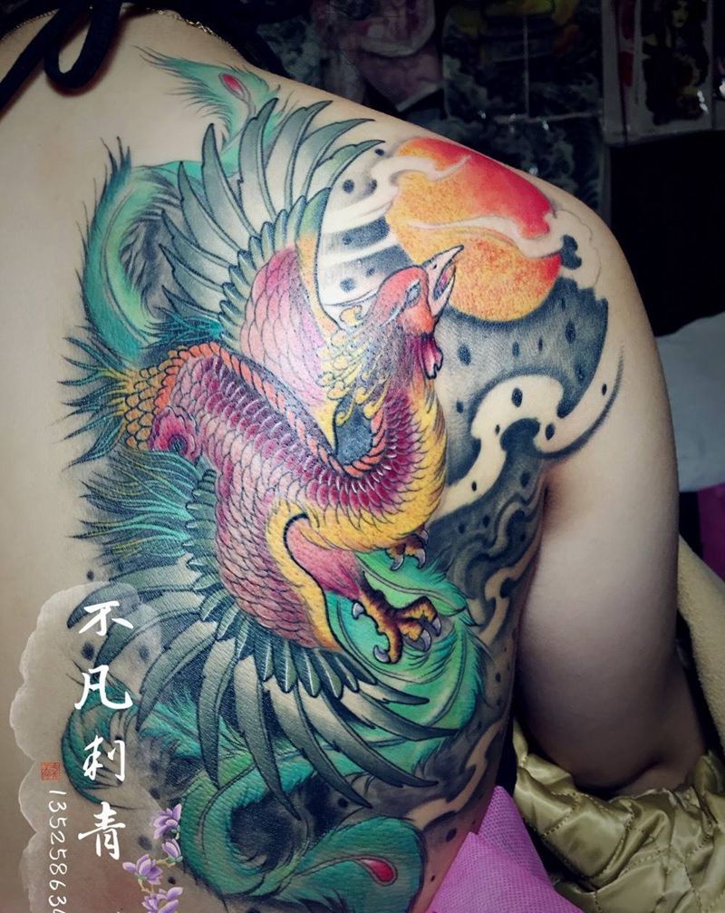 凤凰纹身图片_肩部背部新传统凤凰纹身图案