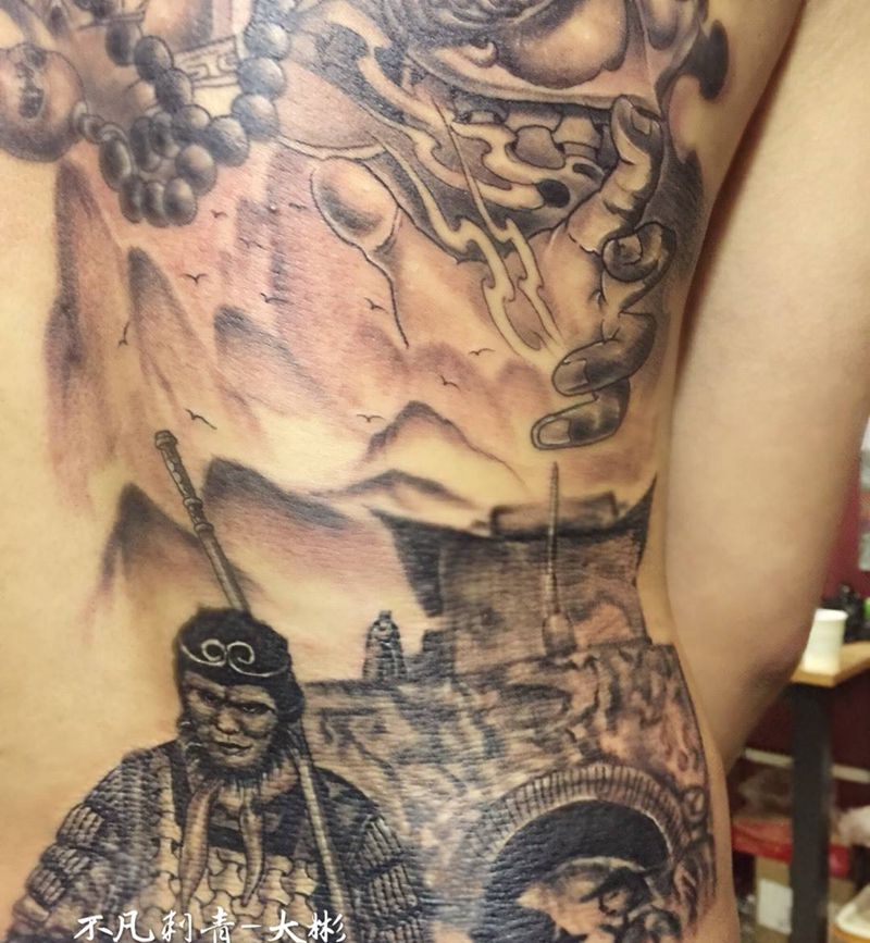 黑灰满背纹身图案