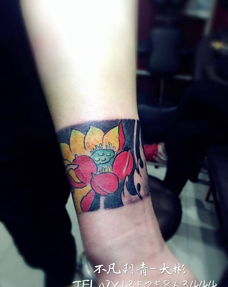 当前位置: 首页 >河南省三门峡市纹身店-客都购物广场纹身图案>原创设计小臂环纹身图片_成品手臂传统动物植物原创鲤鱼纹身图案