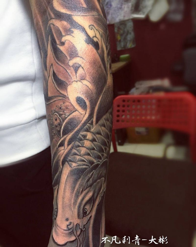 包小臂,一年前半成品做完纹身图片_成品手臂传统动物鲤鱼纹身图案