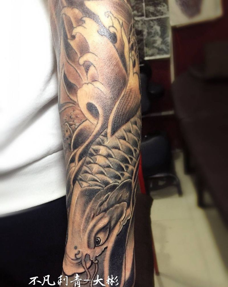 包小臂,一年前半成品做完纹身图片_成品手臂传统动物鲤鱼纹身图案