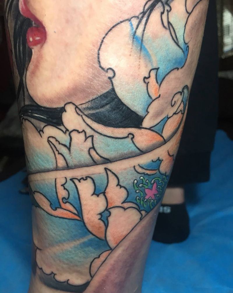 我叫她牡丹仙子纹身图片_腿部新传统艺妓纹身图案