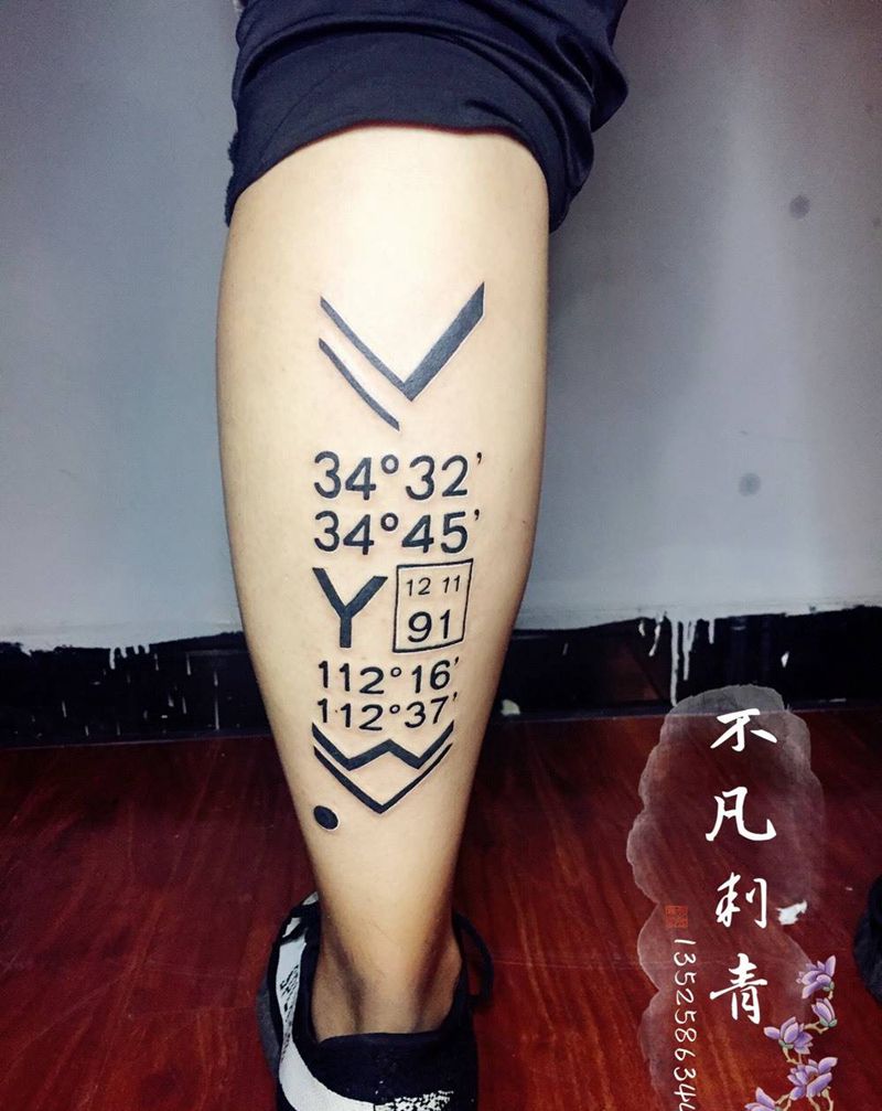 经纬度坐标➕生日纹身图片_腿部几何纹身图案