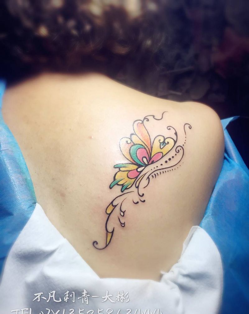 彩色小图纹身图片_成品肩部背部传统清新图腾动物纹身图案