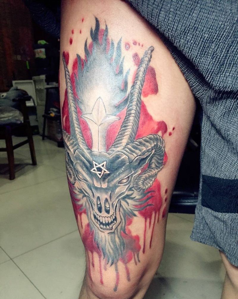 当前位置: 首页 >河南省三门峡市纹身店-客都购物广场纹身图案>撒旦羊头纹身图片_成品腿部欧美几何动物纹身图案