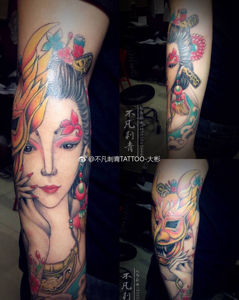 艺妓纹身图片_手臂新传统艺妓纹身图案