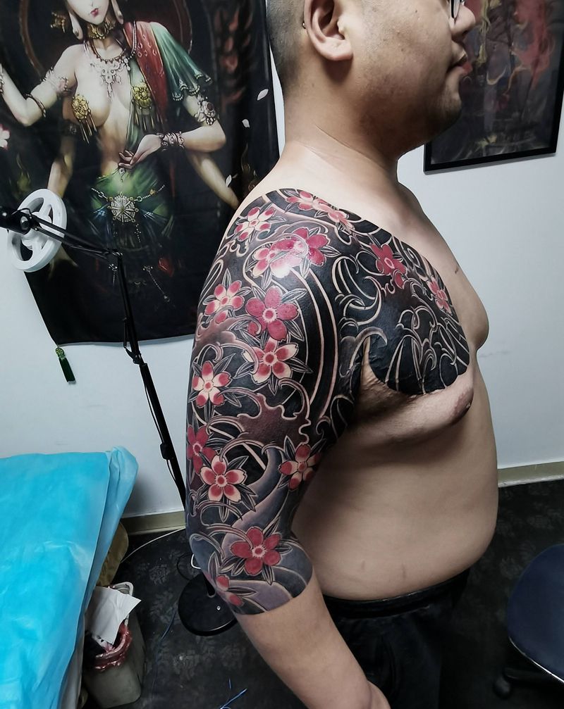 当前位置: 首页 >河南省南阳市纹身店-刺青春专业纹身纹身图案>七分袖半甲纹身图片_手臂胸部老传统纹身图案