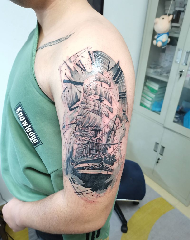 当前位置: 首页 >河南省南阳市纹身店-刺青春专业纹身纹身图案>帆船纹身图片_手臂新传统纹身图案