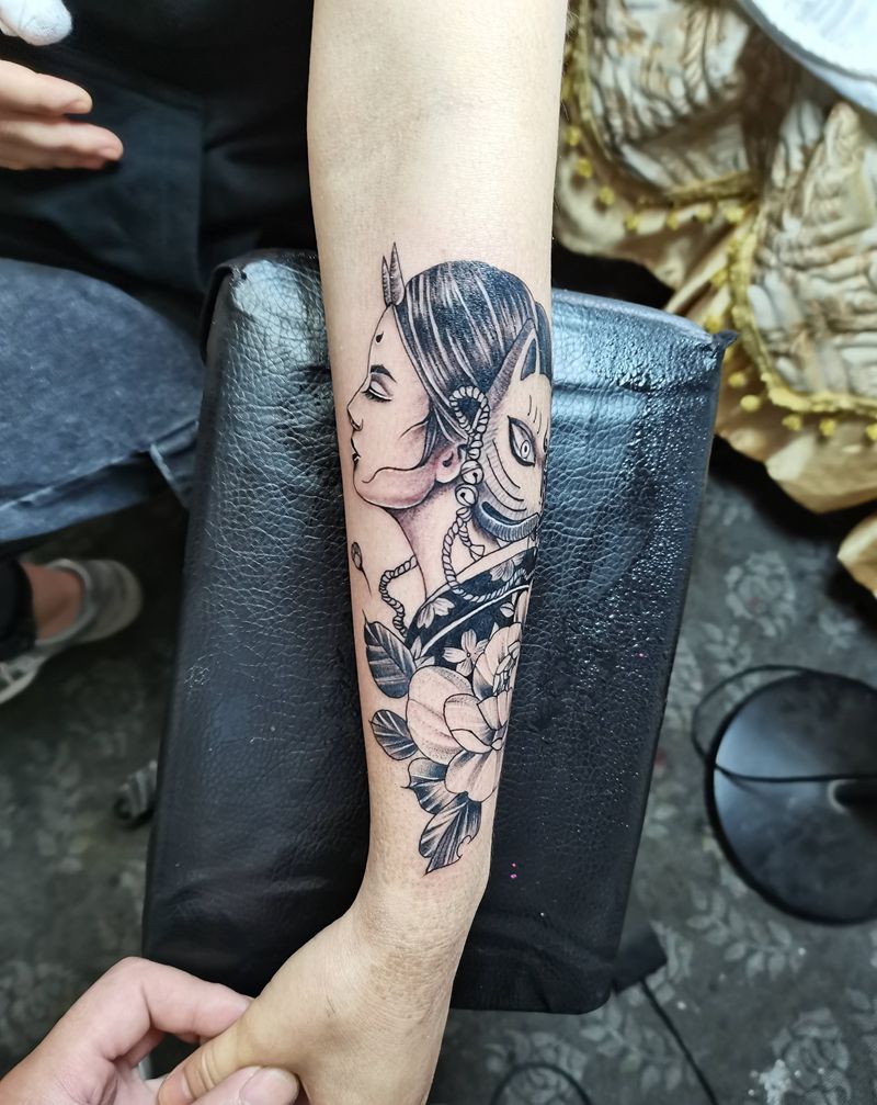 当前位置: 首页 >河南省南阳市纹身店-刺青春专业纹身纹身图案>艺伎纹身图片_手臂新传统纹身图案