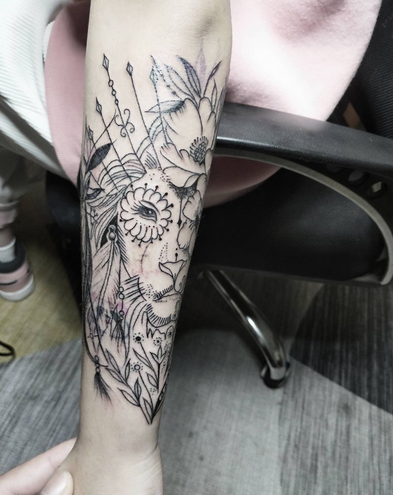当前位置: 首页 >河南省南阳市纹身店-刺青春专业纹身纹身图案>狮子纹身图片_手臂点刺纹身图案