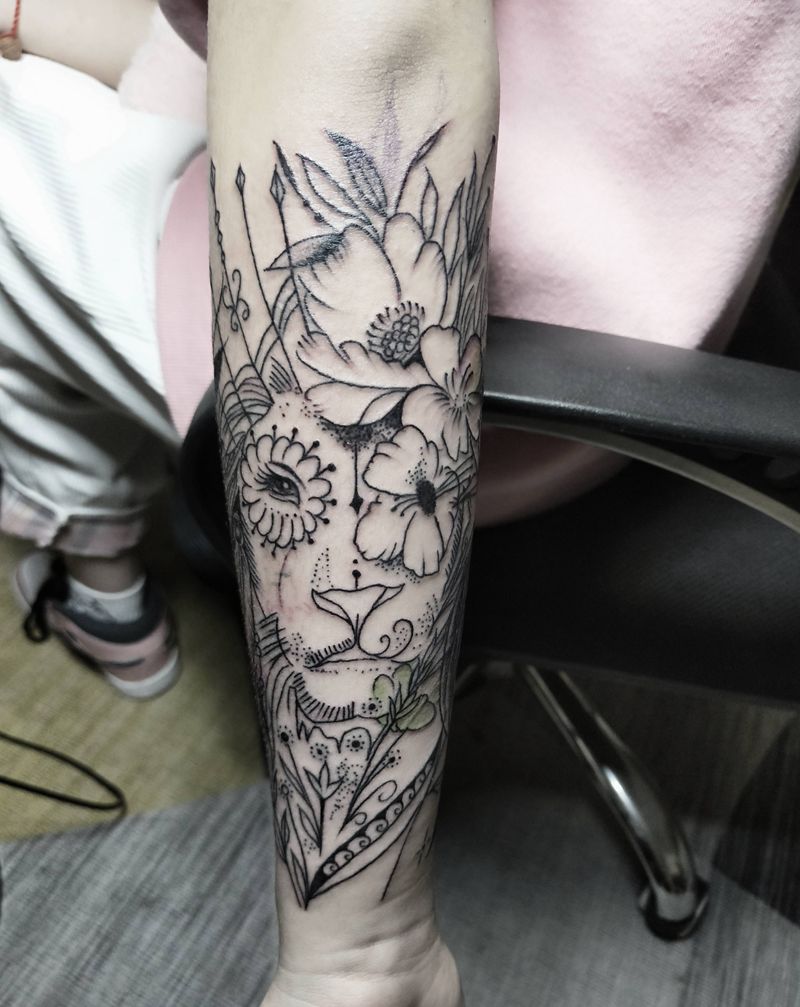当前位置: 首页 >河南省南阳市纹身店-刺青春专业纹身纹身图案>狮子纹身图片_手臂点刺纹身图案