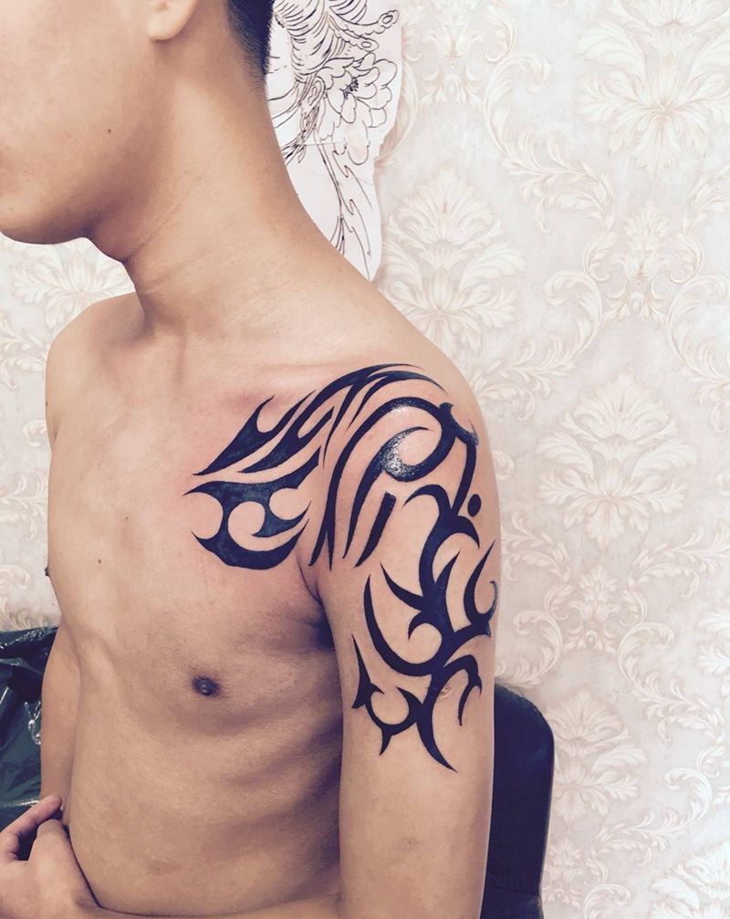 • 纹身吧推荐的披肩图腾半胛纹身图案作品展示