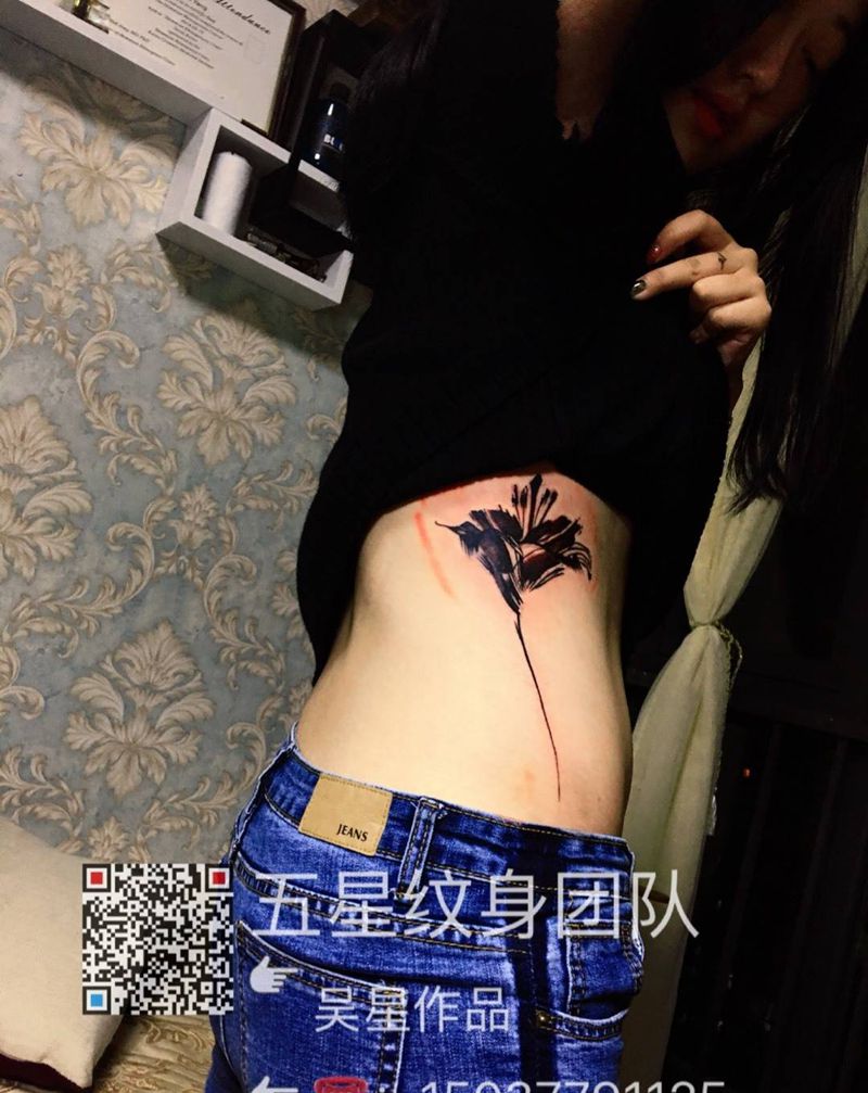 • 东方性感美女腰部温馨花藤图纹身图片