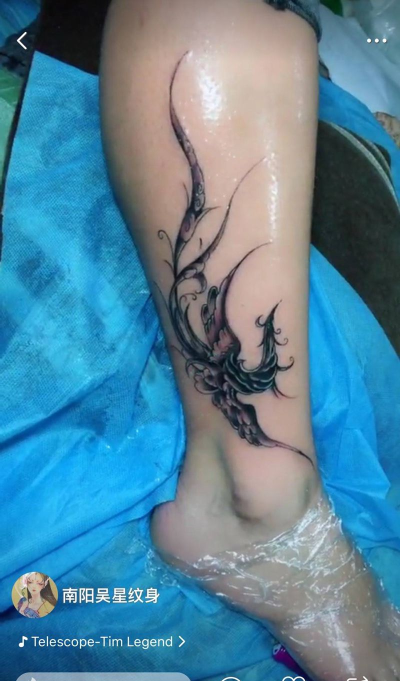 • T网红王老大花腿龙纹身图片_腿部新传统纹身图案