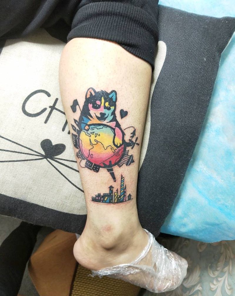 当前位置: 首页 >河南省南阳市纹身店-刺青春专业纹身纹身图案>二哈遮盖纹身图片_腿部纹身图案