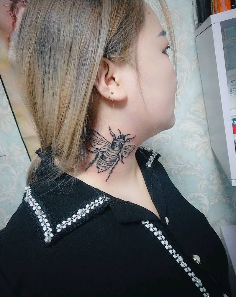 小蜜蜂纹身图片_颈部Old School纹身图案