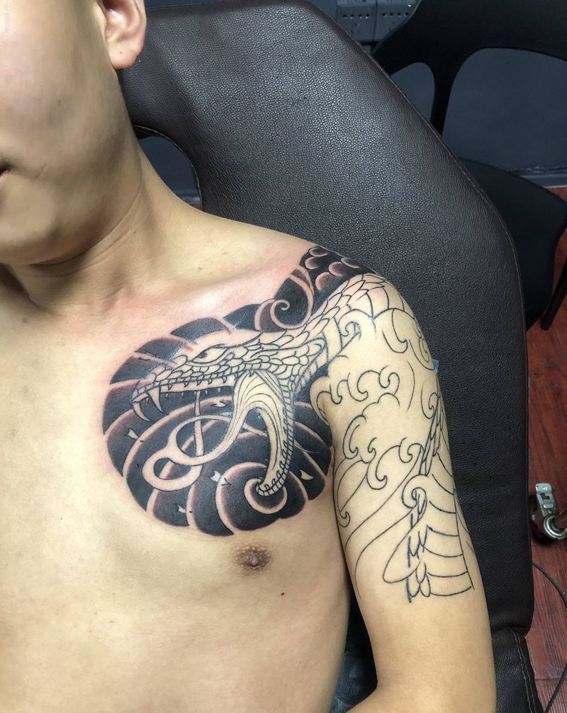 当前位置: 首页 >河南省三门峡市纹身店-净癫刺青工作馆纹身图案>半甲 背景纹身图片_肩部纹身图案