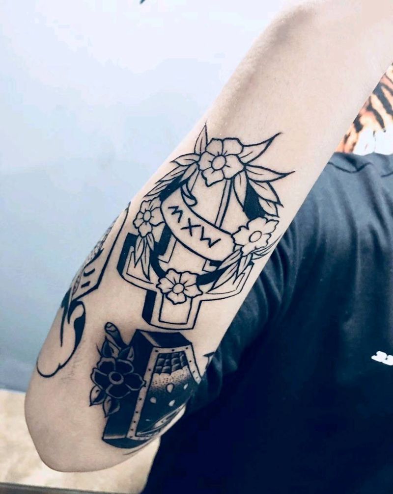一个十字架一个棺材板纹身图片