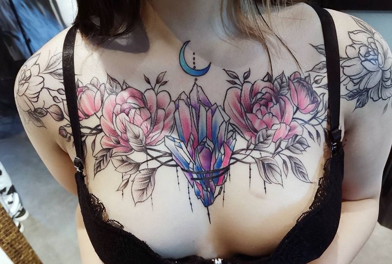 • 女性大花胸纹身_43张霸气漂亮的女性大花胸纹身图案作品