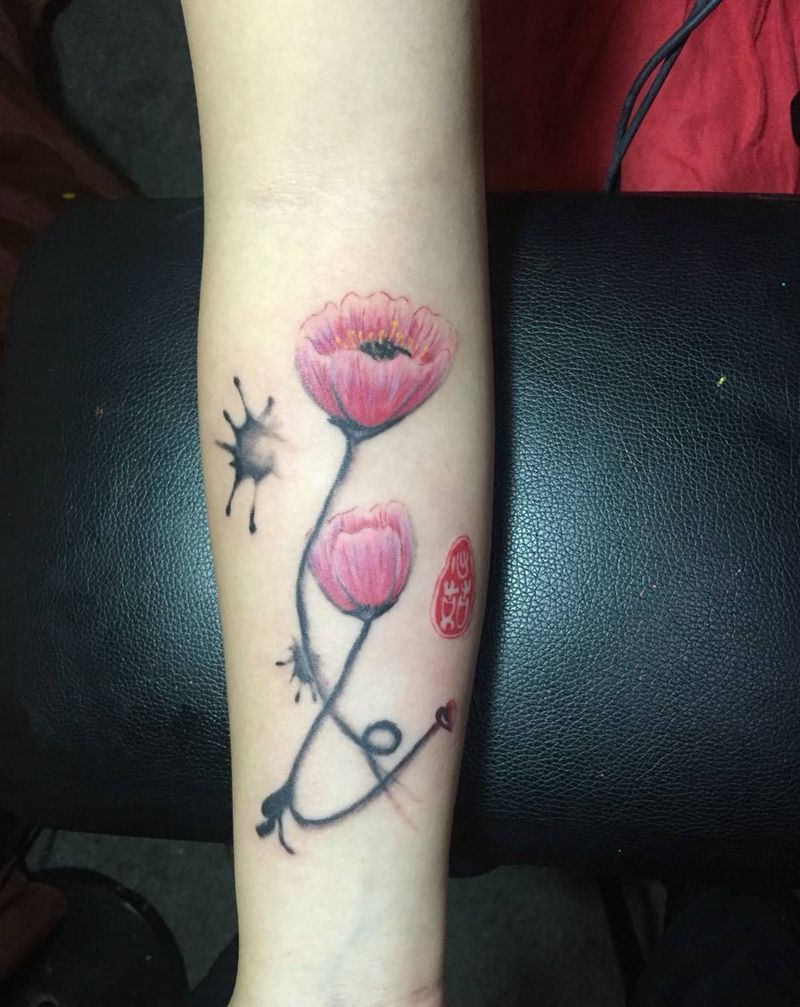 原创中国风水墨罂粟花纹身图片