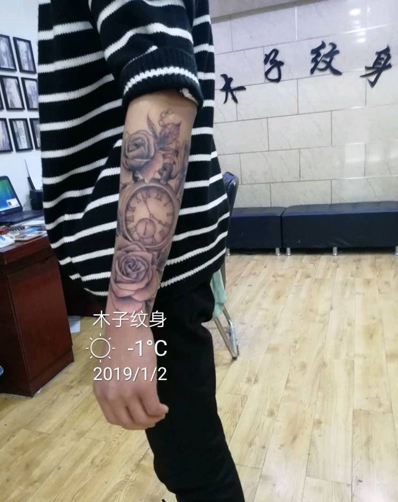 当前位置: 首页 >河南省南阳市纹身店-木子纹身纹身图案>欧美玫瑰时钟纹身图片