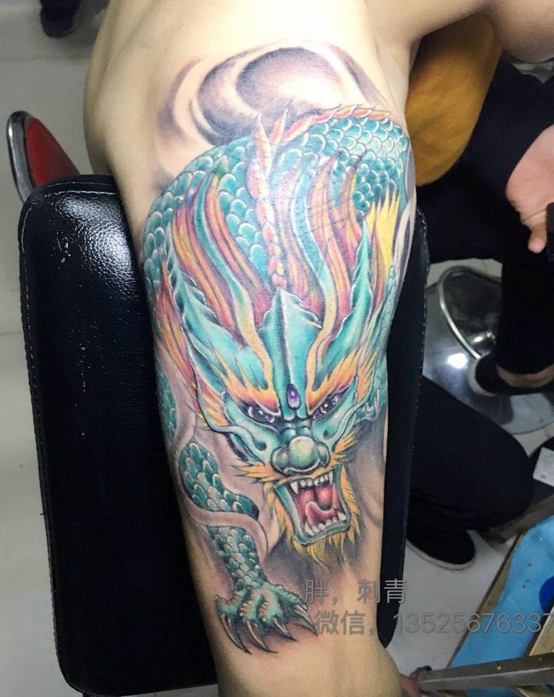 • T网红王老大花腿龙纹身图片_腿部新传统纹身图案
