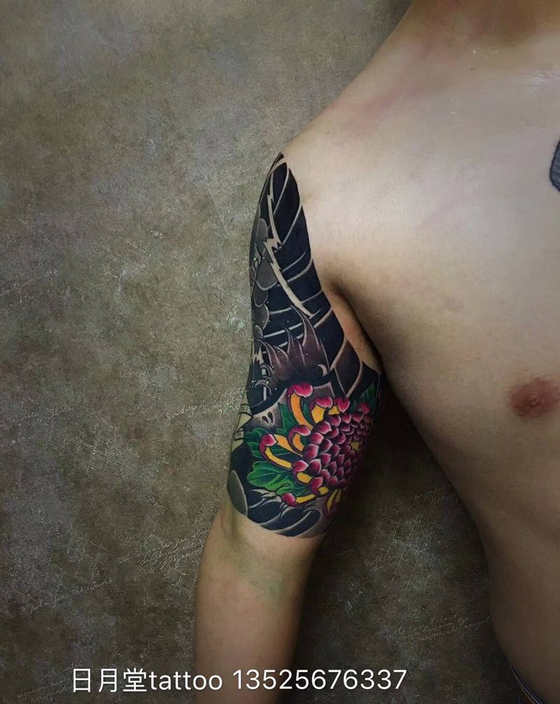 • 纹身吧推荐的披肩图腾半胛纹身图案作品展示