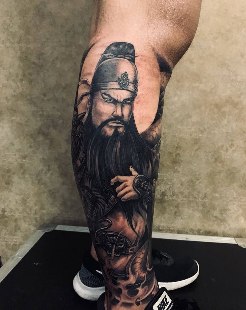 • T网红王老大花腿龙纹身图片_腿部新传统纹身图案