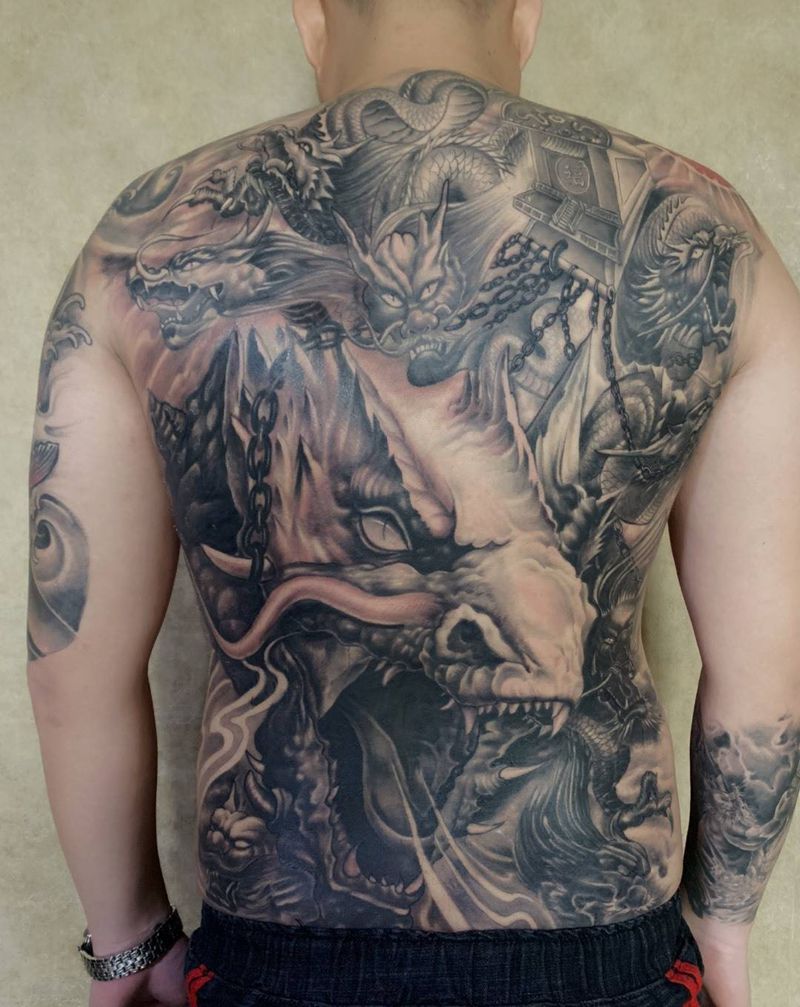 • T云龙九郎纹身图片_背部老传统云龙九郎纹身图案
