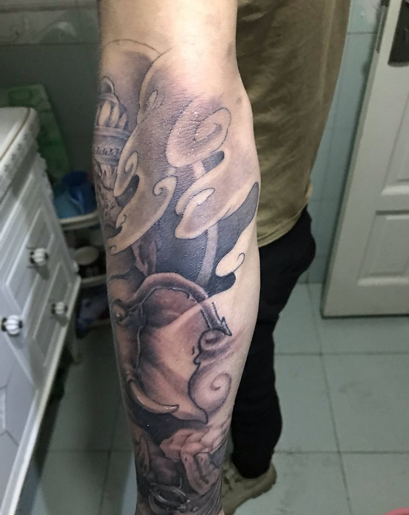 当前位置: 首页 >河南省南阳市纹身店-忆刺青纹身图案>象神纹身图片_手臂新传统纹身图案