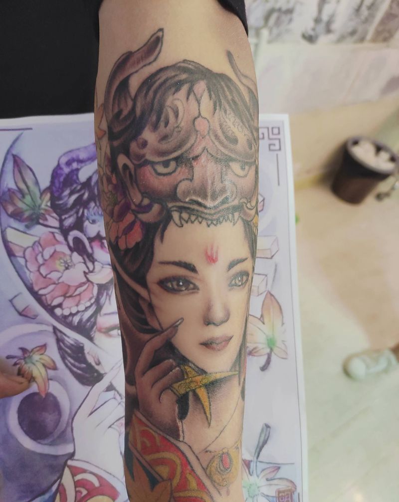 当前位置: 首页 >河南省南阳市纹身店-南阳·鸿蒙纹身纹身图案>艺妓纹身图片_手臂新传统纹身图案