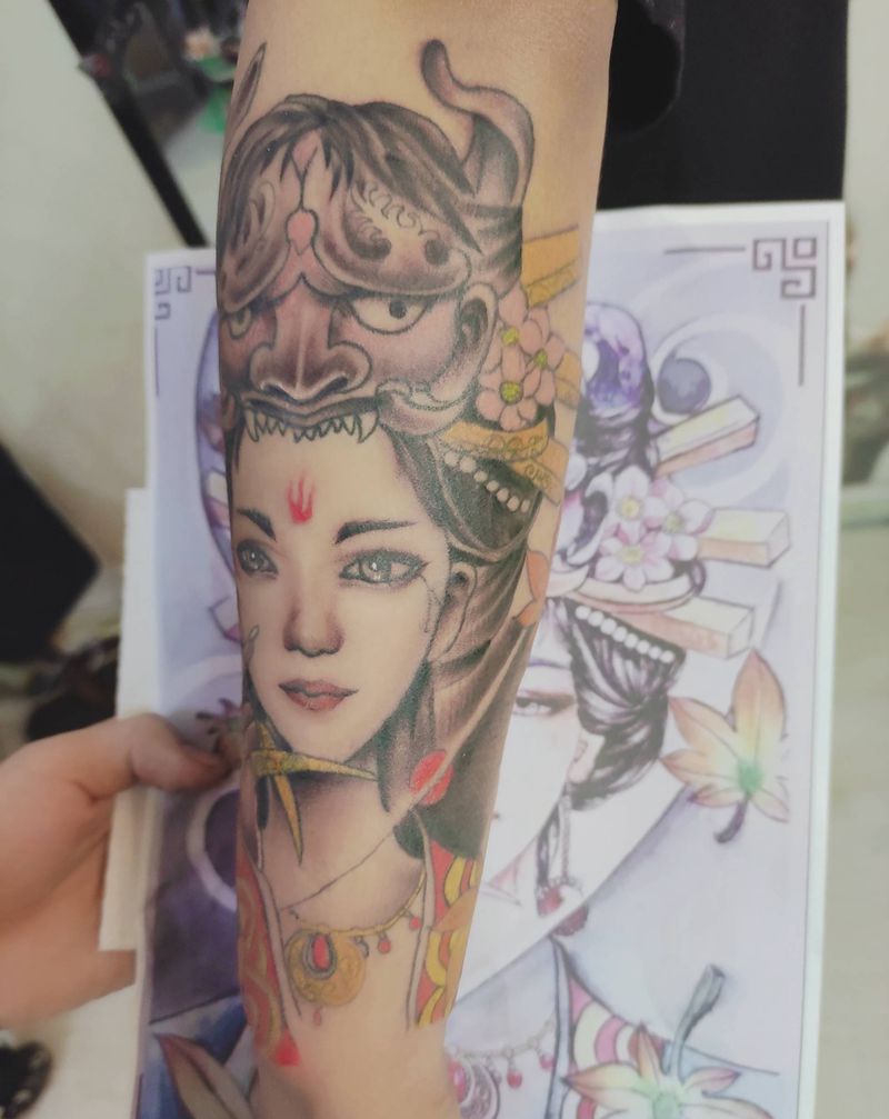 当前位置: 首页 >河南省南阳市纹身店-南阳·鸿蒙纹身纹身图案>艺妓纹身图片_手臂新传统纹身图案
