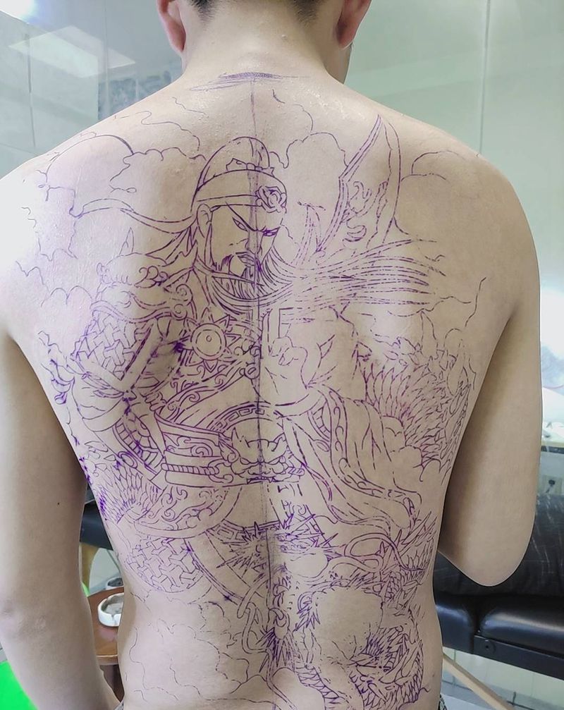当前位置: 首页 >河南省南阳市纹身店-南阳·鸿蒙纹身纹身图案>关公线条800纹身图片_背部新传统纹身图案