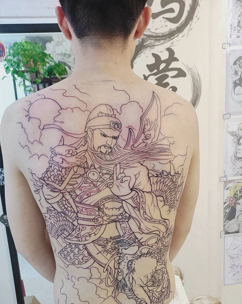 当前位置: 首页 >河南省南阳市纹身店-南阳·鸿蒙纹身纹身图案>关公线条800纹身图片_背部新传统纹身图案