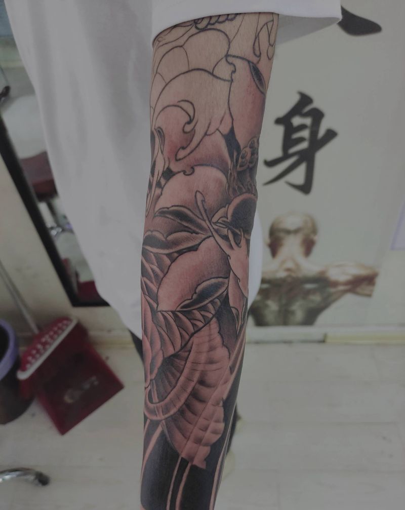 一组15张莲花纹身手