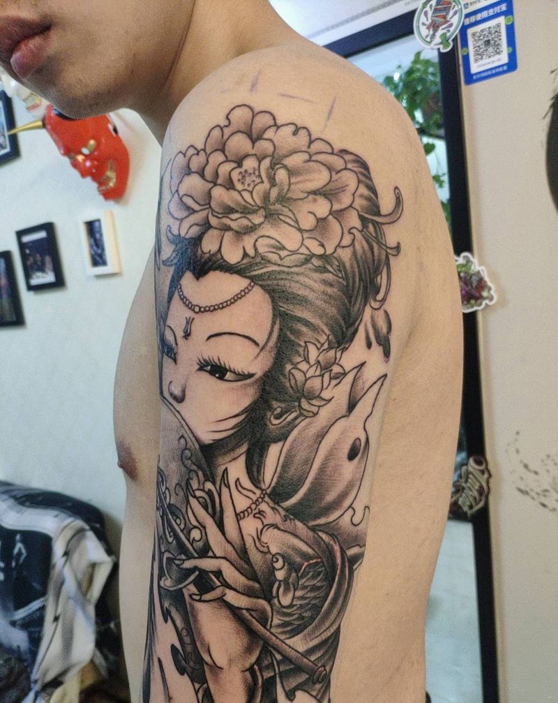 当前位置: 首页 >河南省南阳市纹身店-南阳·鸿蒙纹身纹身图案>艺妓纹身图片_手臂新传统纹身图案