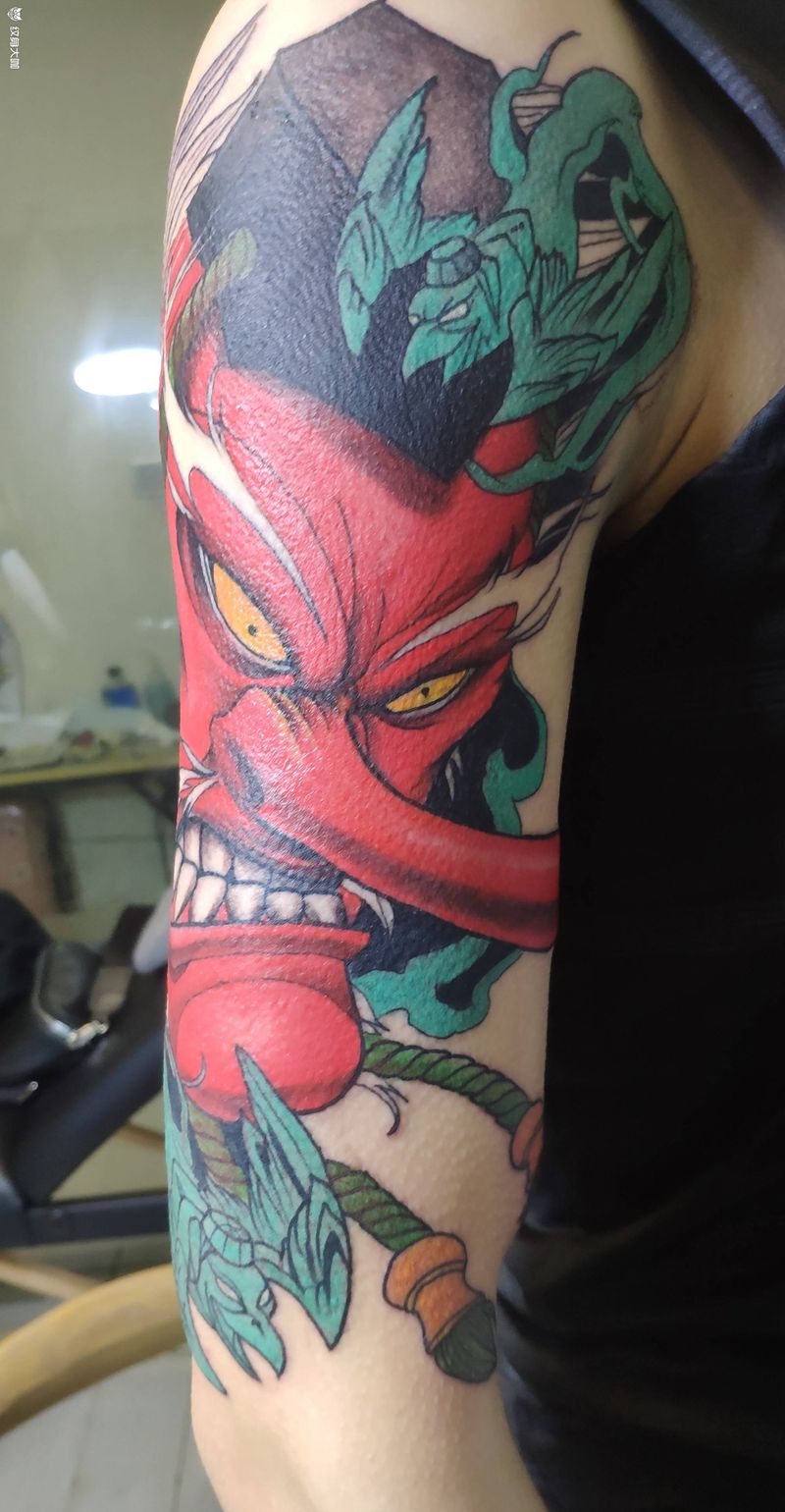 当前位置: 首页 >河南省南阳市纹身店-南阳·鸿蒙纹身纹身图案>大天狗纹身图片_手臂新传统纹身图案