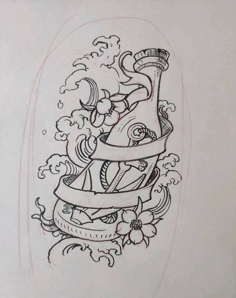 原创漂流瓶纹身图片_手臂New School纹身图案