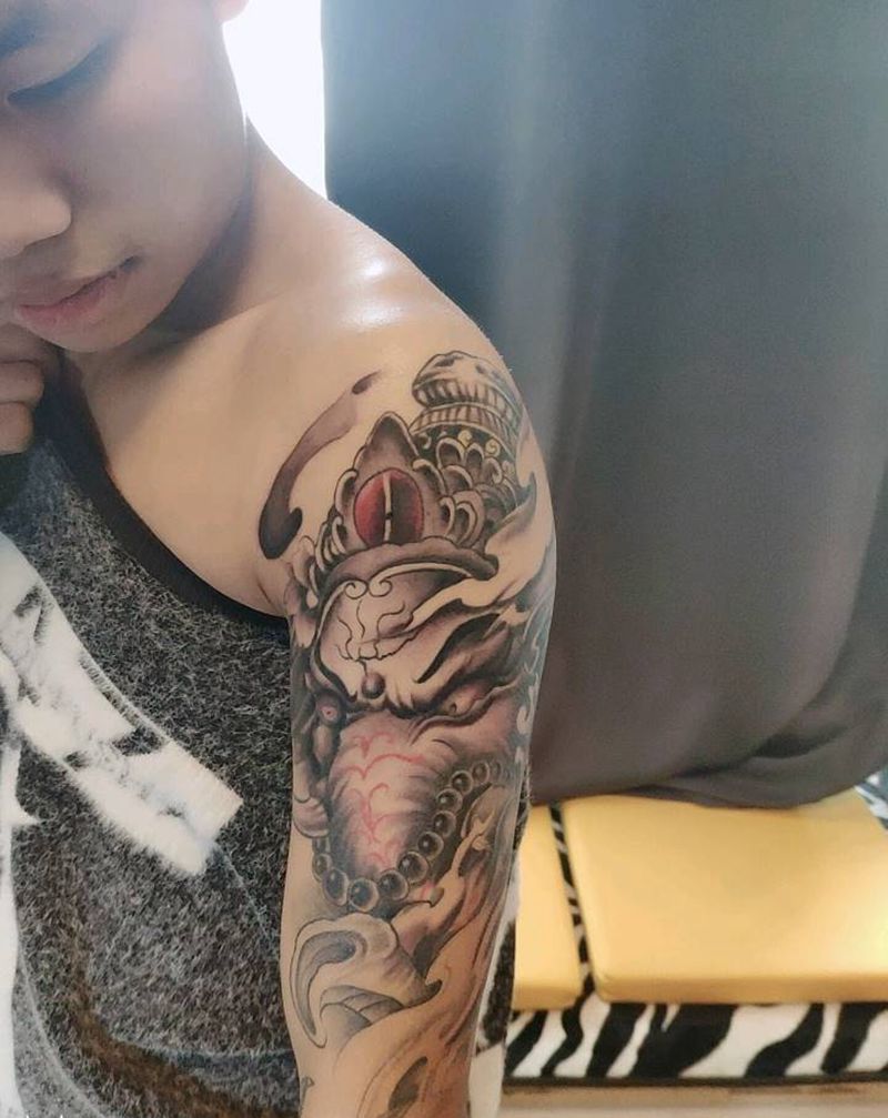 当前位置: 首页 >河南省南阳市纹身店-南阳·鸿蒙纹身纹身图案>象神纹身图片_手臂新传统纹身图案