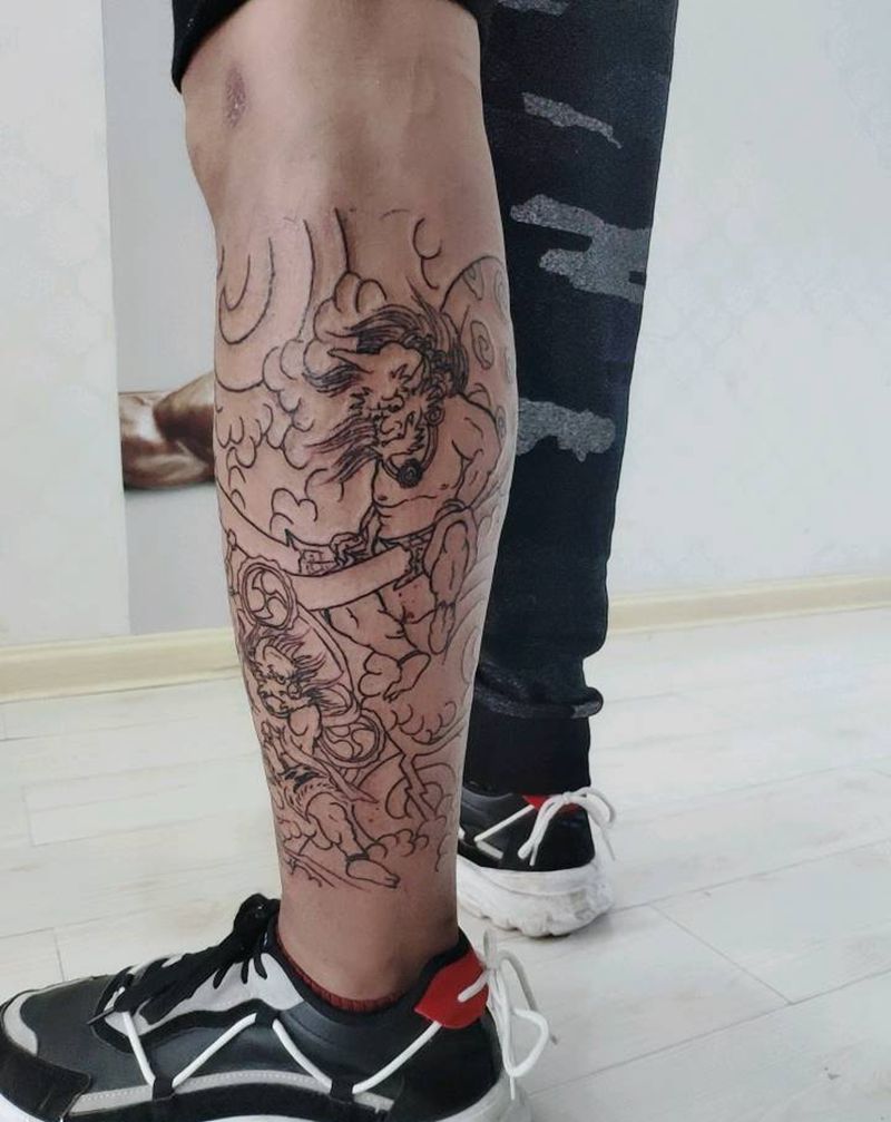 当前位置: 首页 >河南省南阳市纹身店-南阳·鸿蒙纹身纹身图案>小腿风神雷神纹身图片_腿部老传统纹身图案